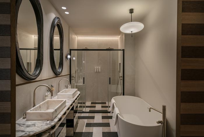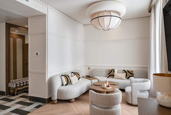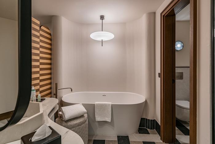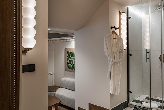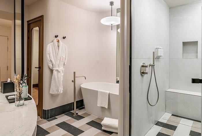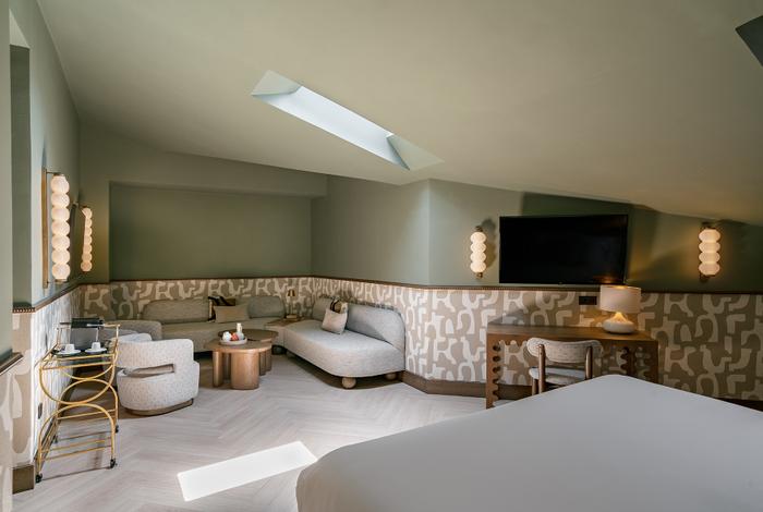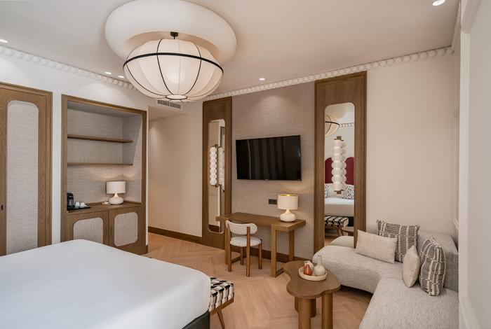 Entdecken Sie den Gipfel der Eleganz und des Komforts in unserer Soho Suite. Diese prächtige Suite verfügt über ein geräumiges Schlafzimmer mit einem modern eingerichteten Doppelbett, eine gemütliche Sitzecke, die sich perfekt für kuschelige Momente eignet, eine Kaffeemaschine und Nespresso-Kapseln, um intime Momente zu genießen, und ein komplettes Badezimmer mit Dusche und Badewanne sowie Bademantel und Hausschuhe. Mit ihrem avantgardistischen Dekor, klaren Linien und sorgfältig ausgewählten Details strahlt die Suite Licht und Wärme aus und schafft eine einzigartige Atmosphäre.