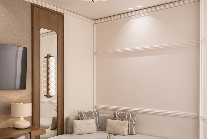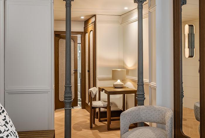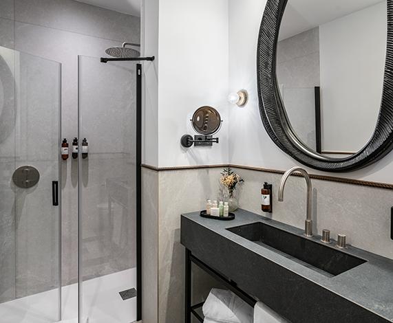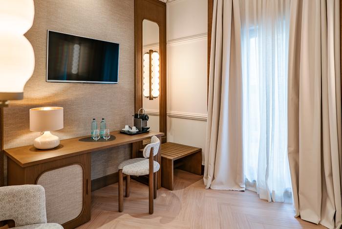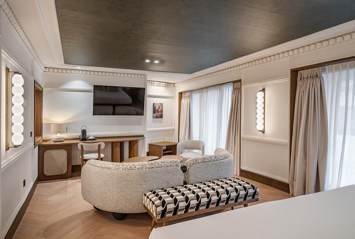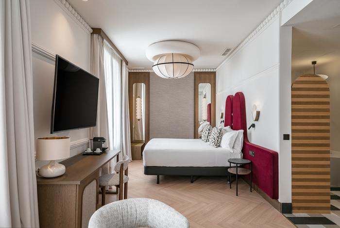 Exklusivität und Geräumigkeit im Herzen von Madrid. Die Grand Deluxe ist ein Zimmer, das für diejenigen gedacht ist, die einen einzigartigen Raum suchen, in dem sich modernes Design und Komfort nahtlos verbinden. Der großzügige Raum umfasst ein Kingsize-Bett, einen gemütlichen Sitzbereich und ein Designerbad mit Premium-Details. Dieses Zimmer lädt Sie ein, ein anspruchsvolles und entspannendes Erlebnis im Herzen des Barrio de las Letras zu genießen.