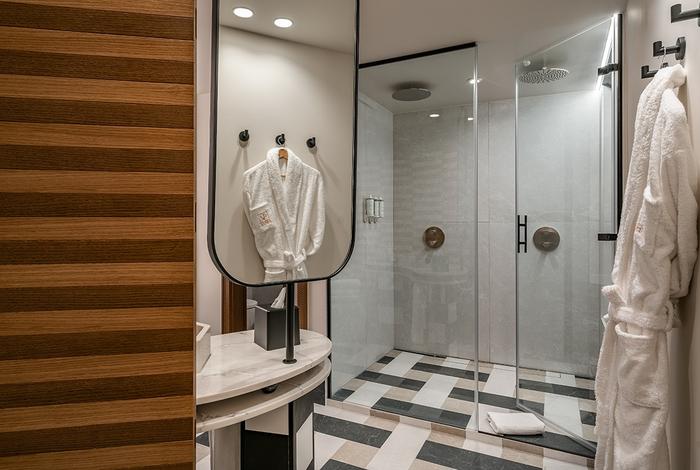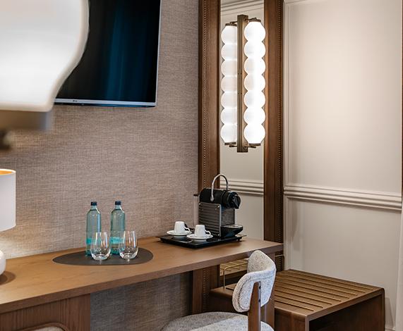 Ein Raum für ein exklusives Erlebnis. Das Deluxe-Zimmer verbindet Eleganz und Moderne mit besonderen Details, die den Unterschied machen. Geräumig, hell und ausgestattet mit einem Doppelbett oder der Option von zwei Einzelbetten sowie einem eleganten Badezimmer mit Dusche, ist dieses Zimmer ideal für alle, die zusätzlichen Komfort und Exklusivität suchen.